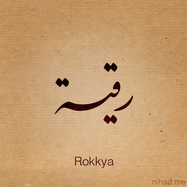 يمكنك كتابة إسم رقية باللغة الإنجليزية كالأتي Roqaia Ruqayah, Ruqaya, Roqayah, Roqaya