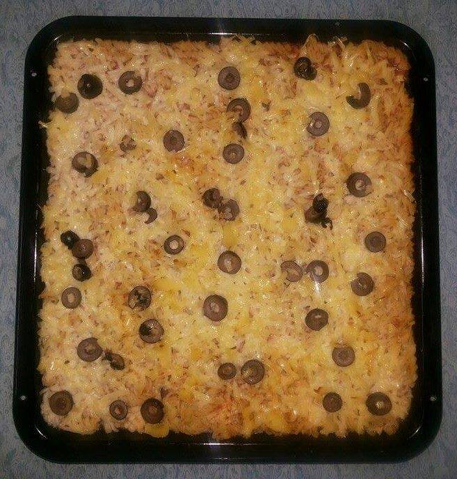 نقوم بتفتيت الجبنة البيضاء و اضافتها الى المعكرونة و نحركهم جيدا نضعها بصينية الفرن و نبشر الجبنة الصفراء و قطع الزيتون الاسود و توضع بالفرن ١٠ دقائق على نار متوسطة....طبق روووووعة