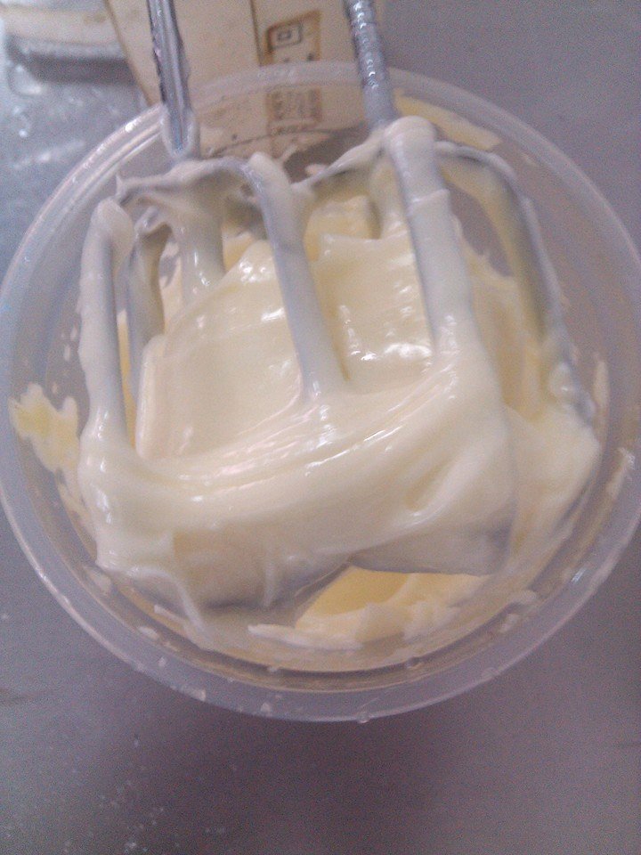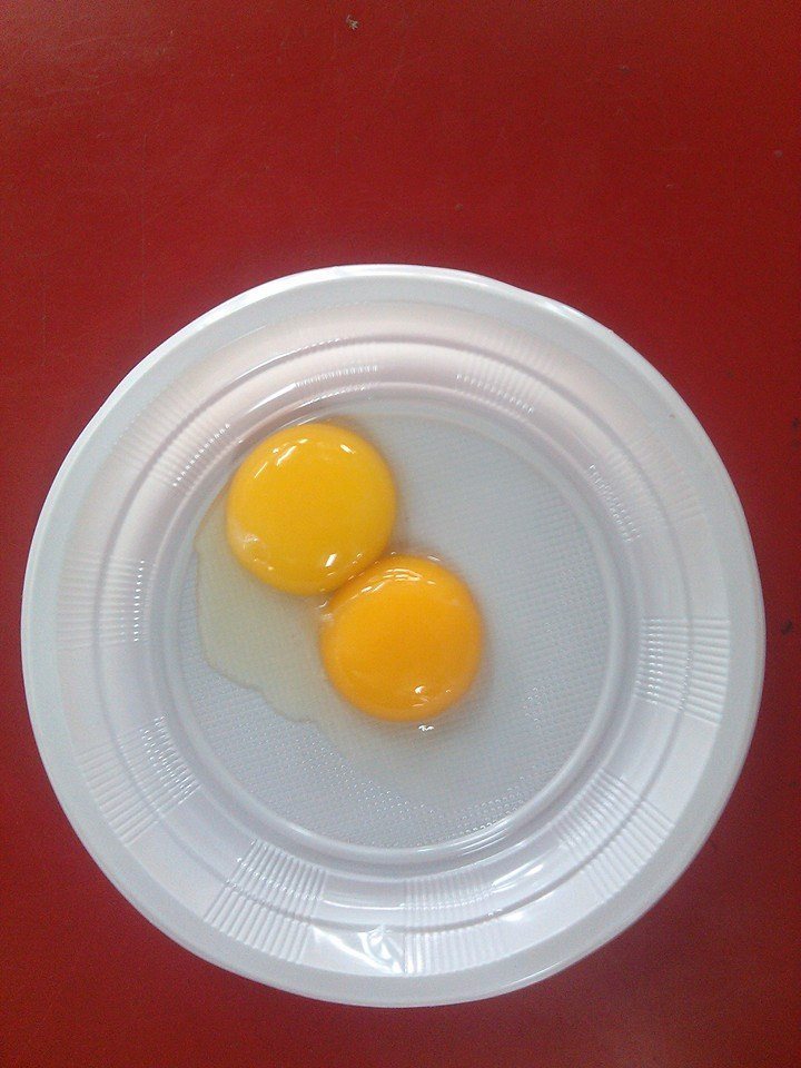 يوضع صفار البيض في وعاء بلاستيكي متوسط الحجم و نبدا بخفق البيض اما بالمضرب اليدوي او الخفاق الكهربائي