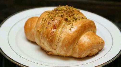 ، ونقوم بدهن الوعاء بالزّيت قبل وضع العجينة فيه، ونغطّي العجينة ونتركها في مكانٍ دافئ حتّى تتخمّر. نفرد العجينة ونشكّلها .ممكن تقطيع العجينة على شكل مثلثات و دهنها بالشكولاتة و لفها على شكل رول.هذا مثال