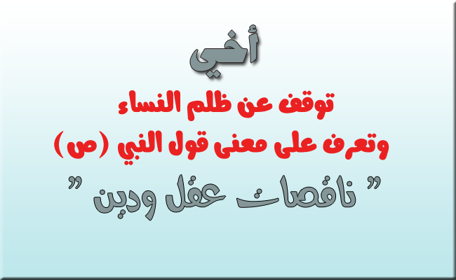 [FONT="]يُسرع بقول : " النساء ناقصات عقل ودين " , ويضحك وكأنه انتصر عليها برده