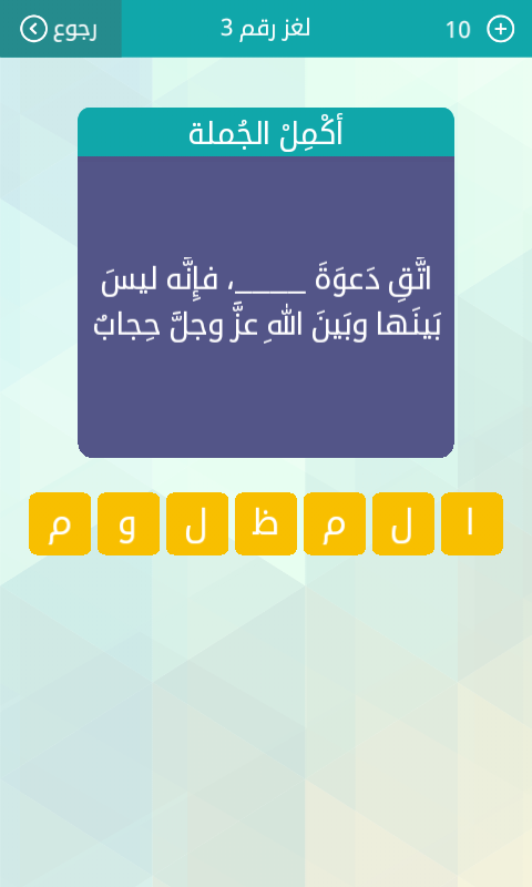 اجابة سؤال اكمل الجملة اتق دعوة ,,,,فانه ليس بينها وبين الله عز وجل حجاب من لعبة وصلة المجموعة الاولى