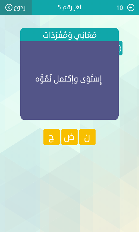اجابة لغز معاني ومفردات استوى واكتمل نموه من لغز رقم 5 من لعبة وصلة المجموعة الاولى