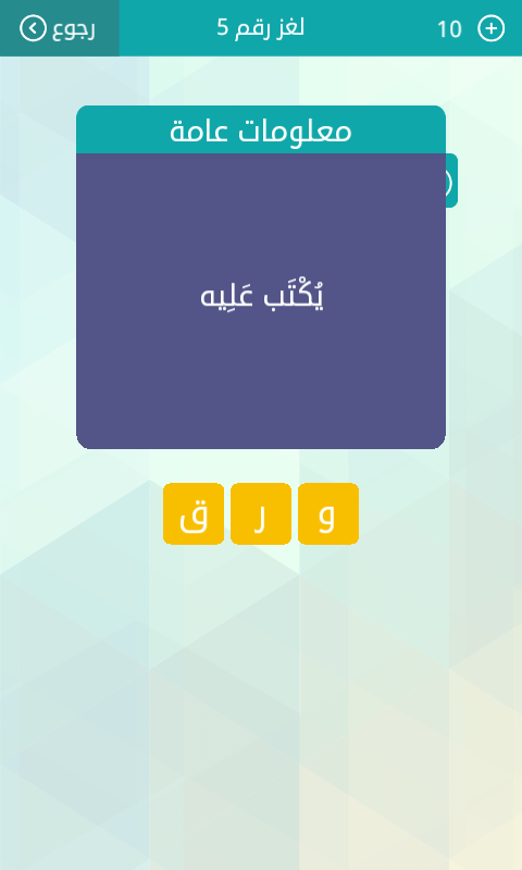 حل سؤال معلومات عامة يكتب علية من لغز رقم 5 من لعبة وصلة المجموعة الاولى