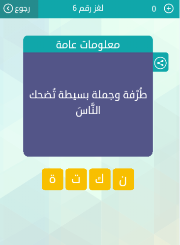 حل اجابة معلومات عامة طرفة وجملة بسيطة تضحك الناس لغز رقم 6 من لعبة وصلة من المجموعة الاولى