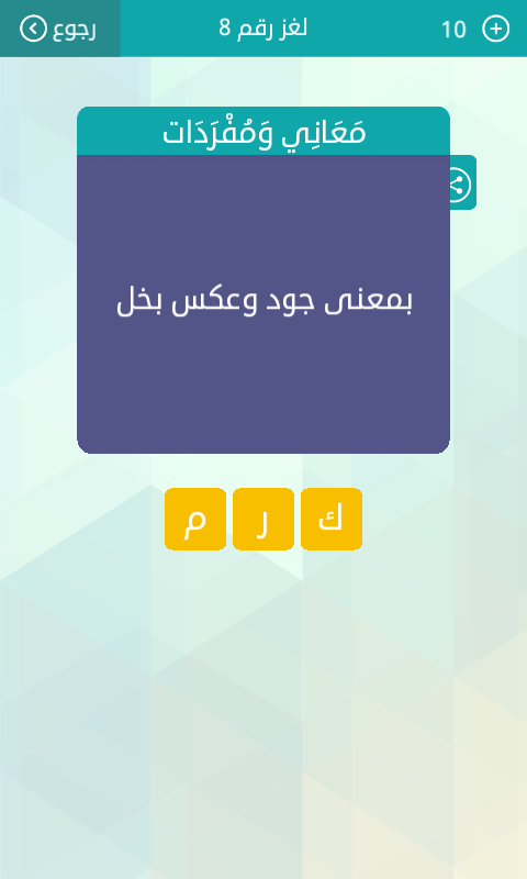 حل سؤال معاني ومفردات بمعنى جود وعكس بخل لغز رقم 8 من لعبة وصلة المجموعة الاولى