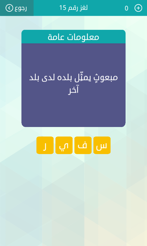 اجابة معلومات عامة مبعوث يمثل بلده لدى بلد اخر لغز رقم 108 من المجموعة الثانية عشر من لعبة وصلة