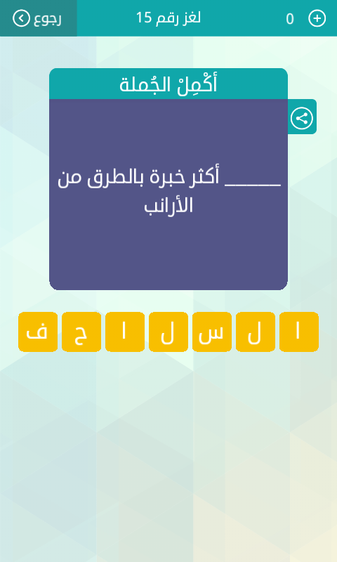 حل سؤال ــــــــــــ اكثر خبرة بالطرق من الارانب لغز رقم 108 من المجموعة الثانية عشر من لعبة وصلة