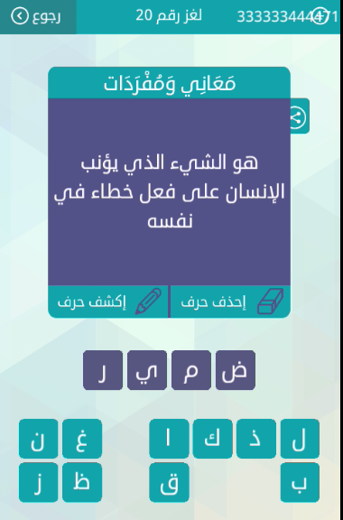 اجابة سؤال هو الشيئ الذى يؤنب الانسان على فعل خطاء فى نفسه لغز لعبة وصلة المجموعة الثالثة لغز رقم20