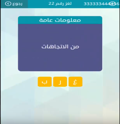 حل اجابة من الاتجاهات لغز رقم 22 من لعبة وصلة للمجموعة الثالثة
