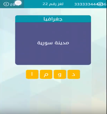 جواب لغز مدينة سورية رقم 22 من لعبة وصلة للمجموعة الثالثة
