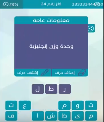 حل جواب وحدة وزن انجليزية من لعبة وصلة المجموعة الثالثة لغز رقم 24