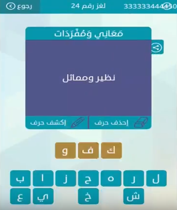 حل سؤال نظير ومماثل من لعبة وصلة المجموعة الثالثة لغز رقم 24