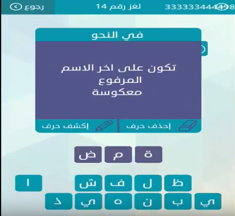 جواب حل تون على اخر الاسم المرفوع معكوسة لغز رقم 14 من لعبة وصلة للمجموعة الثانية