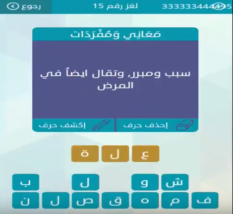 جواب سؤال سبب ومبرر وتقال ايضا فى المرض لغز رقم 15 من لعبة وصلة للمجموعة الثانية