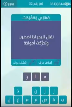 حل تقال للبحر اذا اضطرب وتحركت امواجه لغز رقم 32 من لعبة وصلة للمجموعة الرابعة