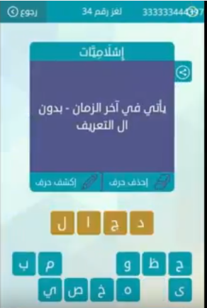 حل لغز ياتى فى اخر الزمان , بدون ال التعريف لغز رقم 34 من لعبة وصلة للمجموعة الرابعة