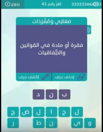 اجابة سؤال فقرة او مادة فى القوانين والاتفاقيات من لعبة وصلة المجموعة الخامسة لغز رقم 42