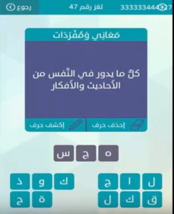 حل لغز كل ما يدور فى النفس من الاحاديث والافكار لغز رقم 47 من لعبة وصلة فى المجموعة السادسة