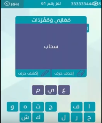 اجابة سؤال سحاب من لعبة وصلة للمجموعة السابعة لغز رقم 61