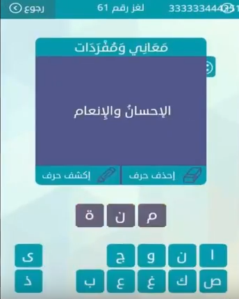 حل سؤال الاحسان والانعام من لعبة وصلة للمجموعة السابعة لغز رقم 61