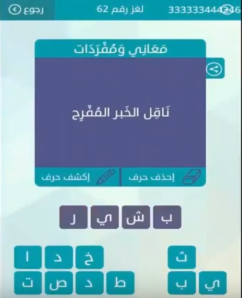 جواب سؤال ناقل الخبر المفرح من لعبة وصلة للمجموعة السابعة لغز رقم 62