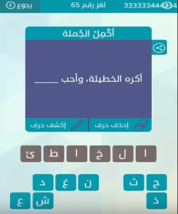 حل سؤال اكره الخطيئة واحب ــــ من لعبة وصلة للمجموعة الثامنة لغز رقم 65