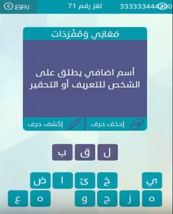 حل اسم اضافى يطلق على الشخص للتعريف او التحضير من لعبة وصلة المجموعة الثامنة لغز رقم 71