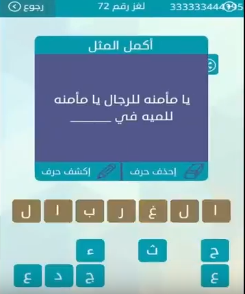 حل لغز يا مأمنه للرجال يا مأمنه للمية فى ــــ من لعبة وصلة المجموعة الثامنة لغز رقم 72