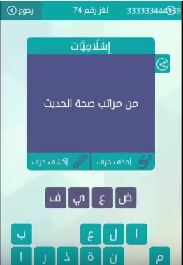 رد: اجابة سؤال من مراتب صحة الحديث لغز رقم 74 من لعبة وصلة للمجموعة التاسعة