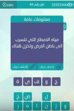اجابة مياه الامطار التى تتسرب الى باطن الارض وتخزن هناك لغز رقم 84 من لعبة وصلة للمجموعة العاشرة