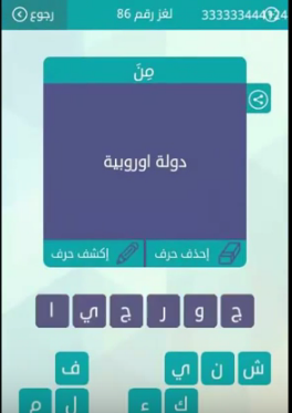 حل لغز دولة اوربية من لعبة وصله رقم 86 للمجموعة العاشرة