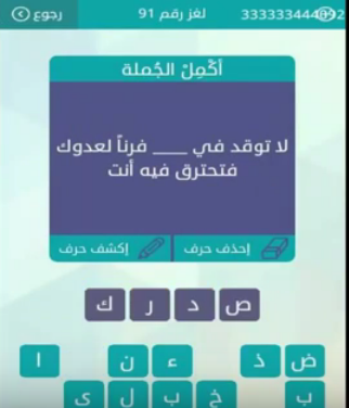 جواب لا توقد فى ـــ فرنا لعدوك فتحترق فيه انت لغز رقم 91 من لعبة وصلة للمجموعة الحادى عشر