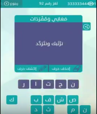 حل سؤال نرتبك ونتردد لغز رقم 92 من لعبة وصلة للمجموعة الحادى عشر