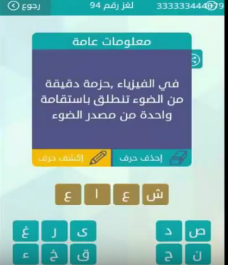 اجابة سؤال فى الفيزياء حزمة دقيقة من الضوء تنطلق باستقامة واحدة من مصدر الضوء لغز رقم 94 من لعبة وصلة للمجموعة الحادى عشر