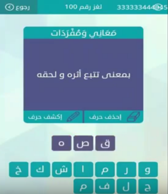 جواب سؤال بمعنى تتبع اثره ولحقهمن لعبة وصلة المجموعة الثانية عشرة لغز رقم 100