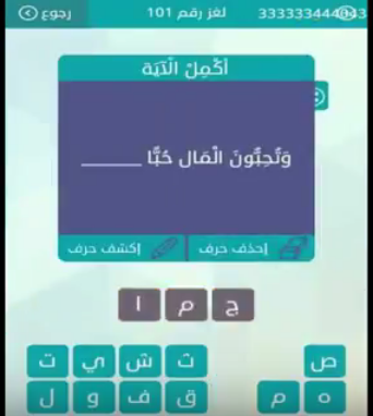 جواب لغز وتحبون المال حبا ـــ من لعبة وصلة المجموعة الثانية عشرة لغز رقم 101