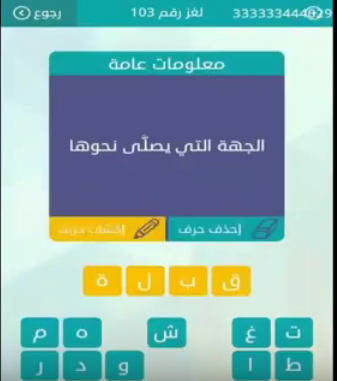 اجابة لغز الجهة التى يصلى نحوها رقم 103 للمجموعة الثانية عشرة