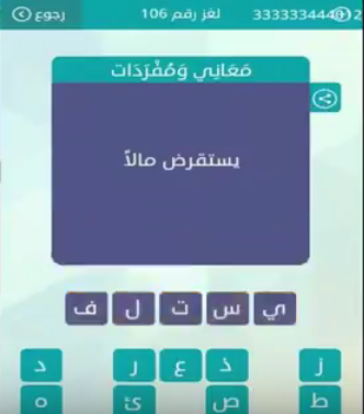 اجابة لغز يستقرض مالا من لعبة وصلة لغز رقم 106 للمجموعة الثانية عشرة