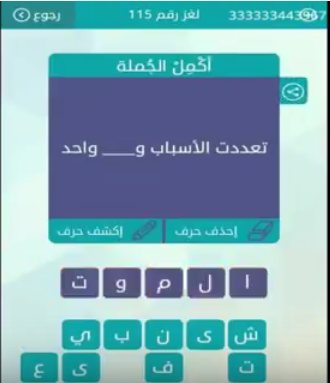 جواب سؤال تعددت الاسباب وــ واح رقم 115 من لعبة وصلة للمجموعة الثالثة عشرة