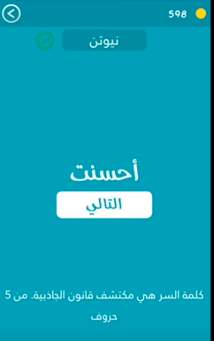 جواب هى مكتشف قانون الجاذبية من مكونة من خمس احرف من لعبة كلمة السر 2