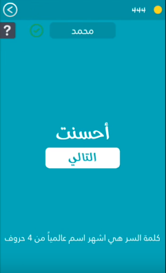 اجابة هى اشهر اسم عالميا مكونة من 4 حروف من لعبة كلمة السر 2