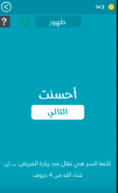 كلمة السر هى تقال عند زيارة المريض _ ان شاء الله مكونة من 4 حروف