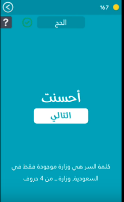 كلمة السر هى وزارة موجودة فقط فى السعودية وزارة من 4 حروف