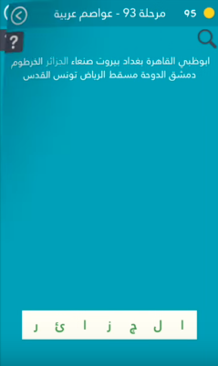 اجابة مرحلة 93 عواصم عربية من لعبة كلمة السر 2