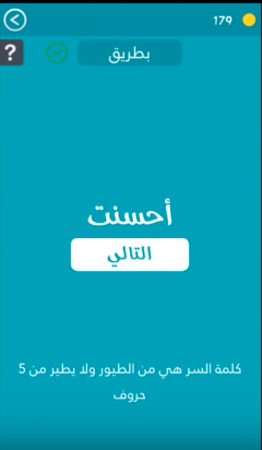 كلمة السر هى من الطيور ولا يطير من 5 حروف