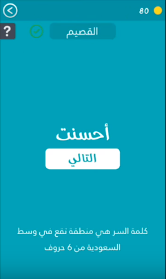حل هى منطقة تقع فى وسط السعودية من 6 حروف من لعبة كلمة السر 2