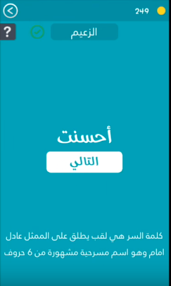 اجابة هى لقب يطلق على الممثل عادل امام وهو اسم مسرحية مشهورة من 6 حروف من لعبة كلمة السر 2
