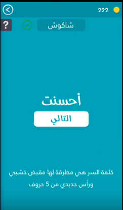 كلمة السر هى مطرقة لها مقبض خشبى وراس حديدى من 5 حروف