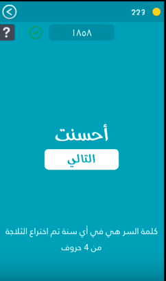 جواب هى فى اى سنة تم اختراع الثلاجة من 4 حروف من لعبة كلمة السر 2